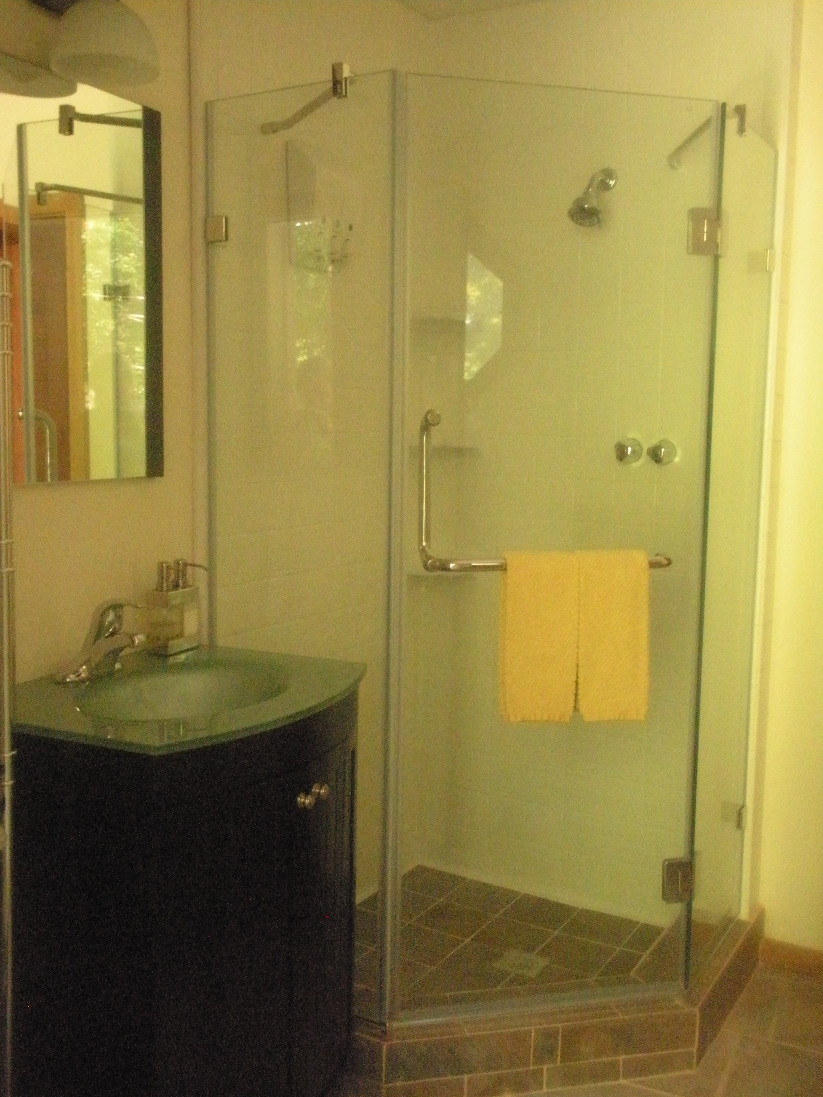Choose this room when wanting a king-size brass bed with traditional mattress for support and Memory Foam topper for plushness. 15 X 12 ft. room is decorated with oriental keepsakes and soft blue tones. Private en-suite bathroom with shower.